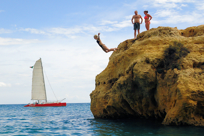 A 2 hour Algarve cruise with a break for swimming in a small bay or in the middle of the ocean. Come and enjoy the most romantic time of day for sailing. Free wine and juice included.